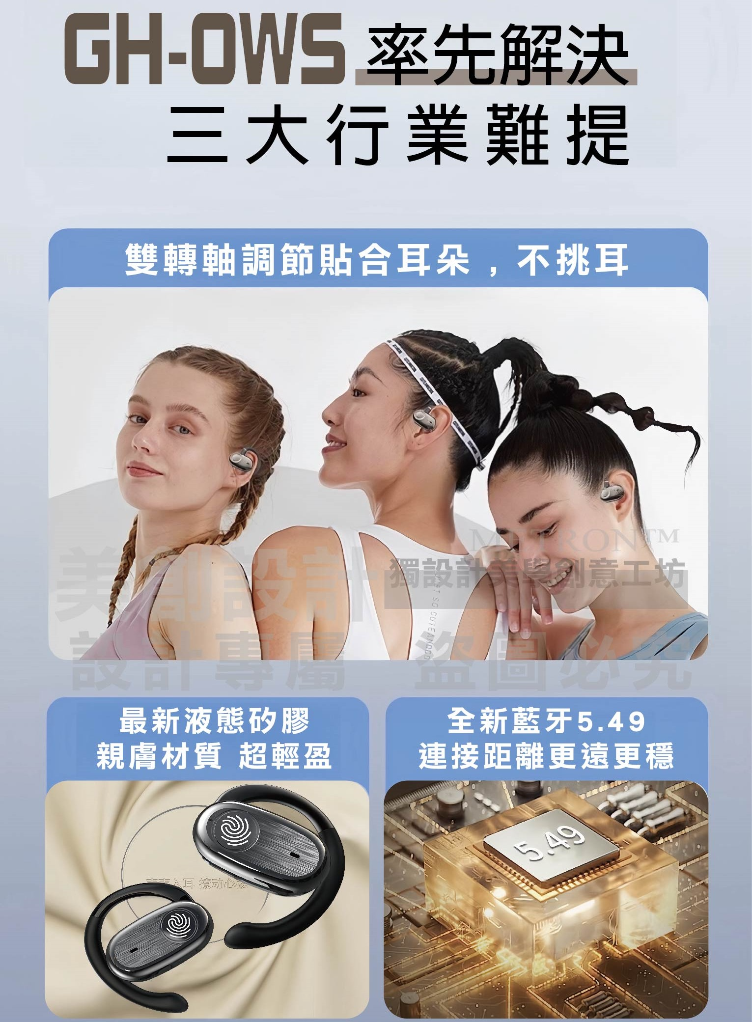 GH-OWS采用全新一代藍牙耳機 創新雙軸旋轉佩戴 人體工學設計 雲感佩戴舒適無感