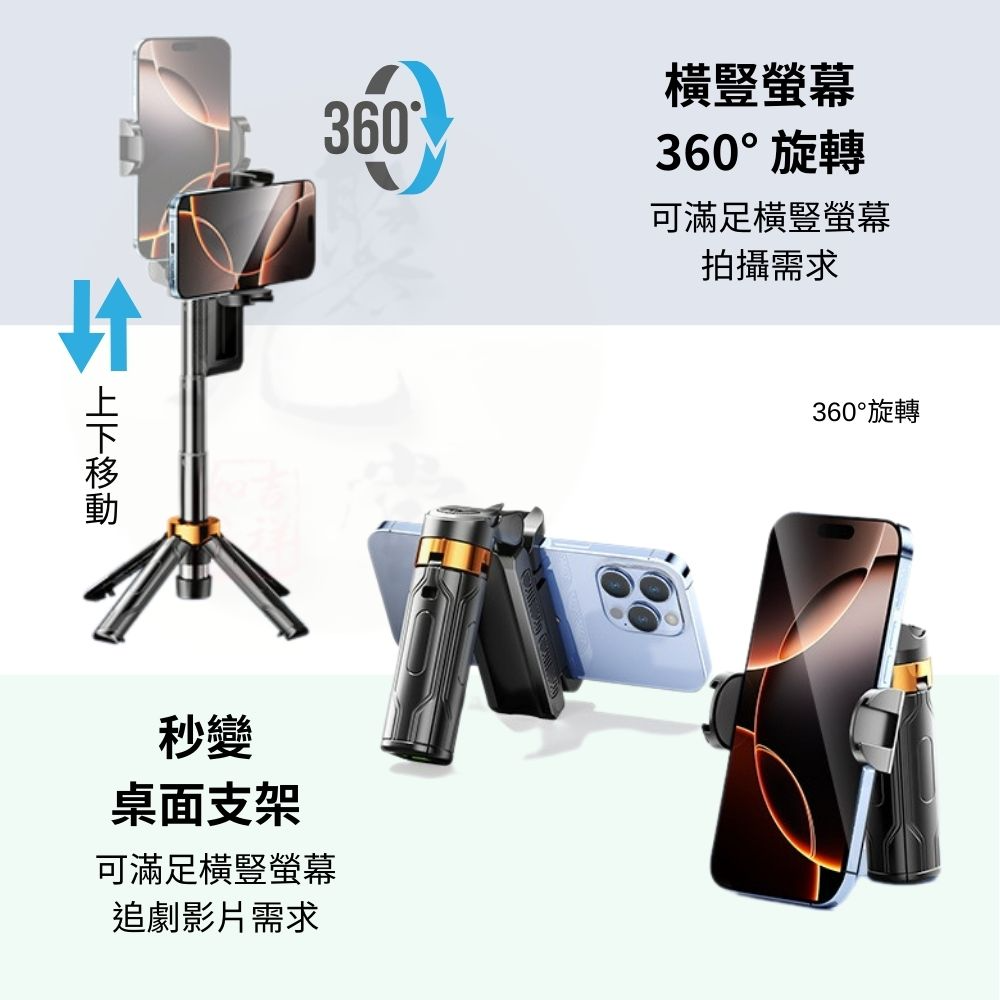 【聚元堂 】2025新款 迷你自拍棒 自拍手柄四腳架 手機支架 三合一 手機稳定助拍器 補光燈 自拍神器