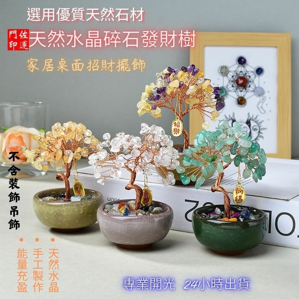 佐運門 專業開光 天然水晶碎石發財樹 家居擺飾 桌面招財擺飾 辦公擺飾 擺件 裝飾品 能量水晶 水晶樹 發財樹 迷你造型
