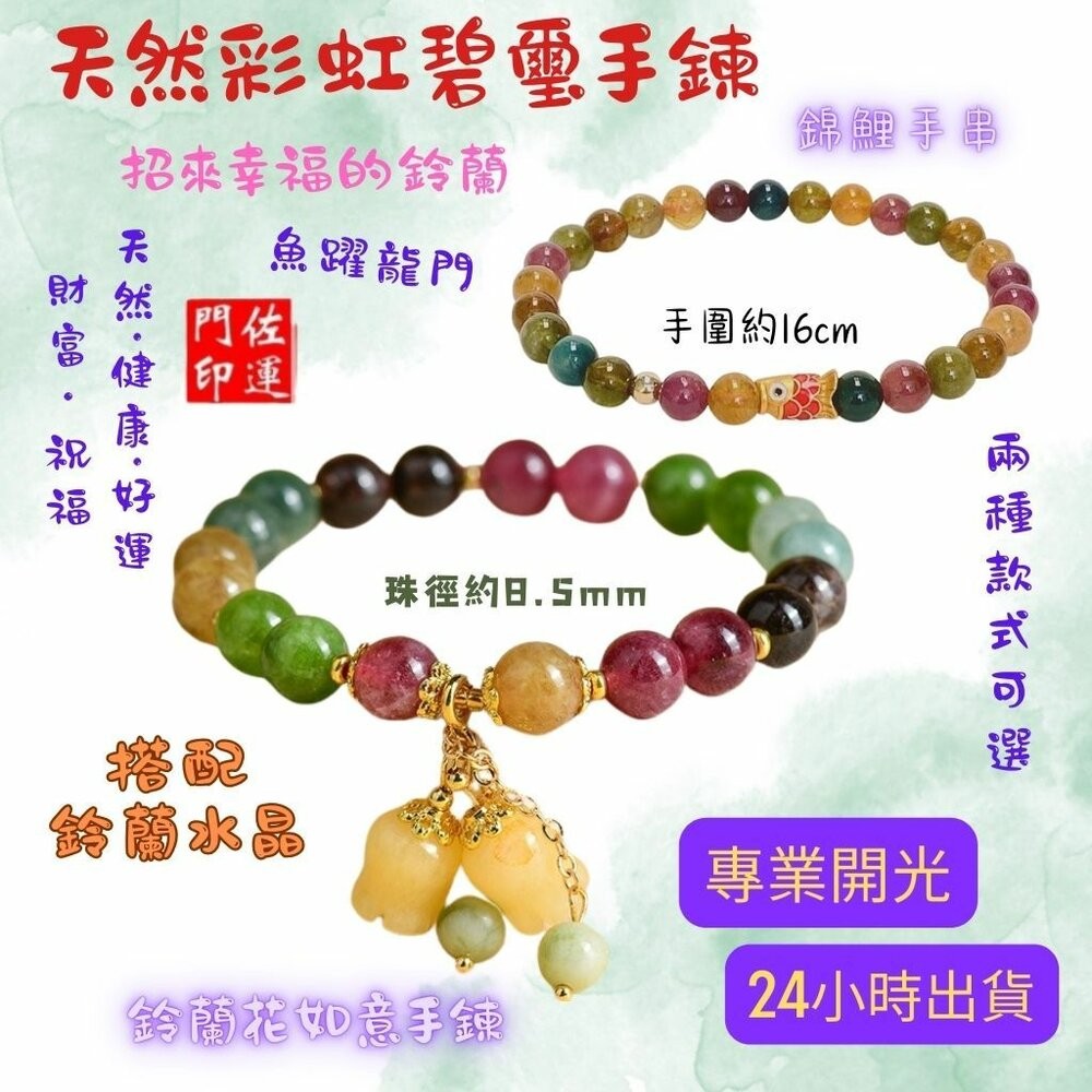 手鍊上鑲嵌的彩色碧璽,如同夢幻般的寶石,為你帶來無盡的魅力。每一顆碧璽都經過精心挑選,色彩斑斕,宛如大自然的調色盤。而那鈴蘭花吊墜,更如同一顆璀璨的星辰,閃爍著溫柔的光芒。