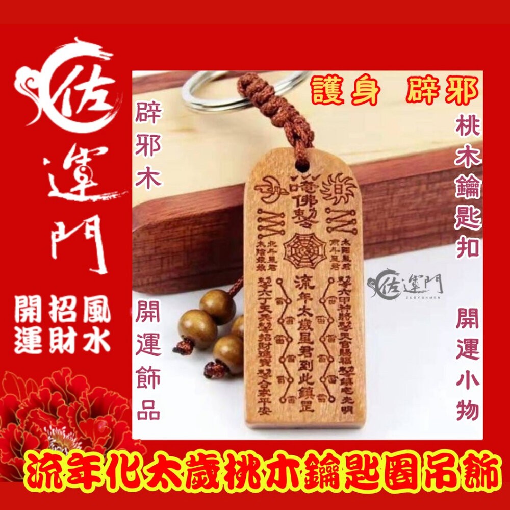 【品名】:桃木流年化太歲鑰匙圈吊飾