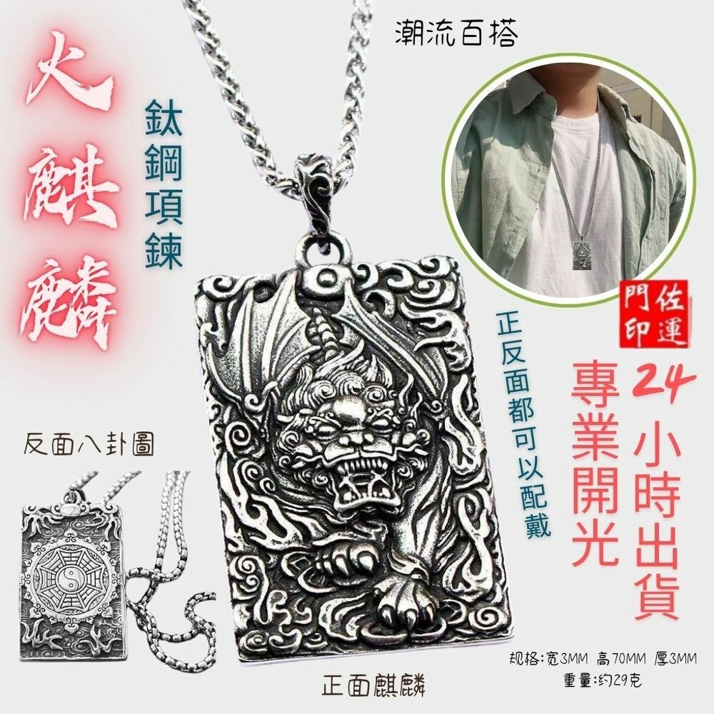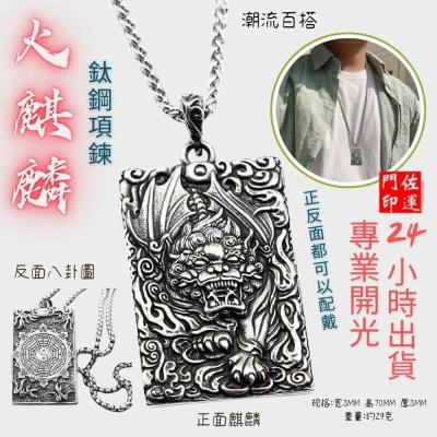 【品名】:鈦鋼 銀 麒麟八卦吊墜 項鍊