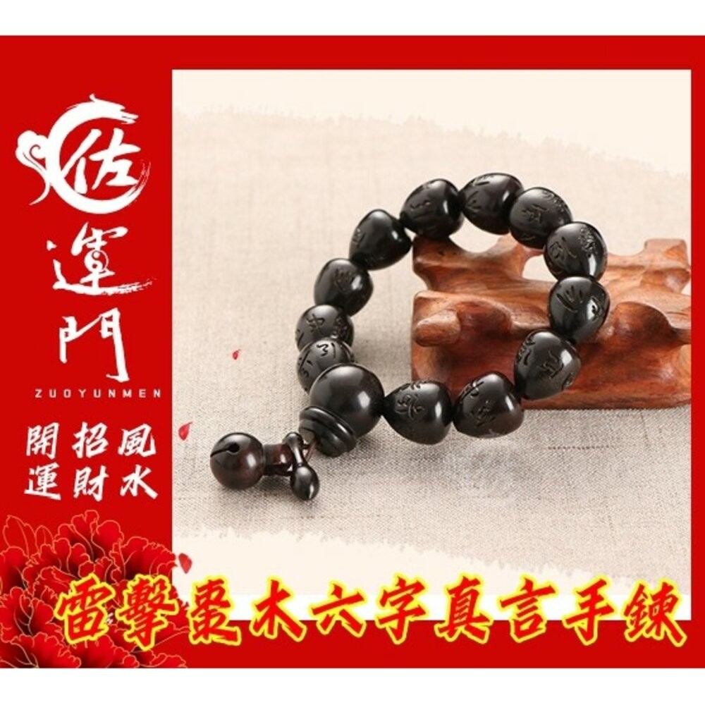 【品名】:雷擊棗木護身避邪手鍊 雷擊木手珠 六字箴言手串 單圈 (精緻款)