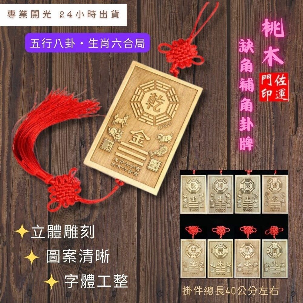 桃木補缺角~共八個掛位~每片 都依規矩押上對應符令~