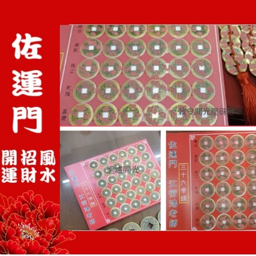 三十六枚帝錢主要用來引氣 緩氣 隔開 例:陽宅下面車道出入口 房間在騎樓上 等所用