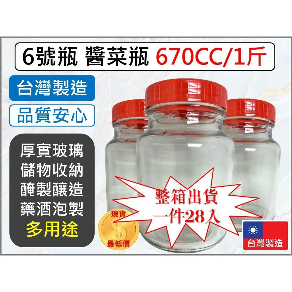 6號瓶 玻璃罐 醬菜瓶 670CC 整箱出貨 28入 泡菜瓶 果醬瓶 收納容器 醬菜瓶瓶 玻璃瓶 蜂蜜瓶 【揪好室】