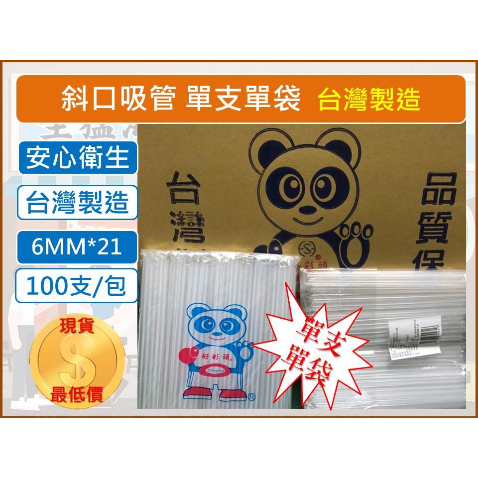 斜口吸管 6MM*21 【 單支單袋 】 1包100支 斜口吸管 塑膠 PP 一次性 飲料吸管 波霸吸管 【揪好室】