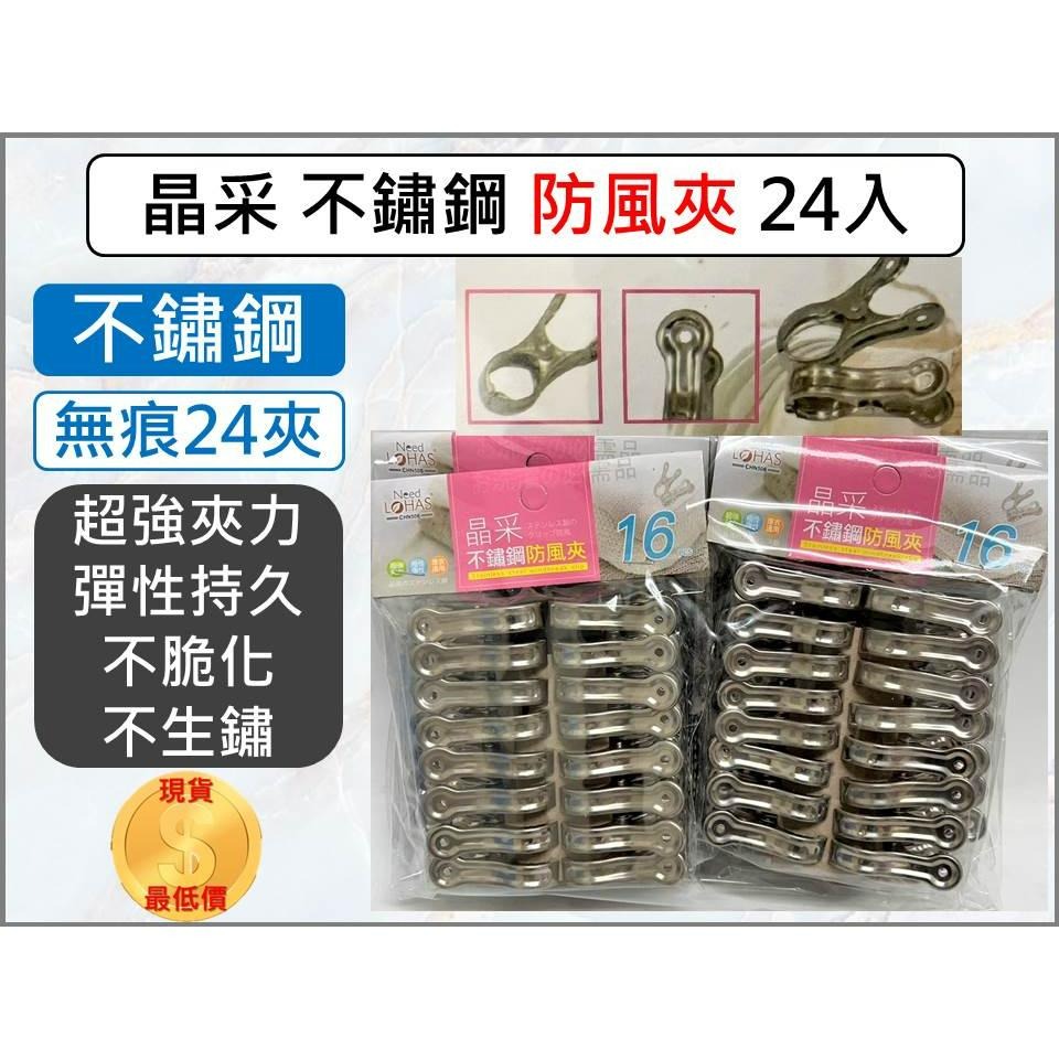 晶采 不銹鋼防風夾 【24入】 不鏽鋼衣夾 防風夾 夾襪子 線形夾 被單夾 彈簧衣夾 晾衣夾 襪夾 曬衣夾 【揪好室】
