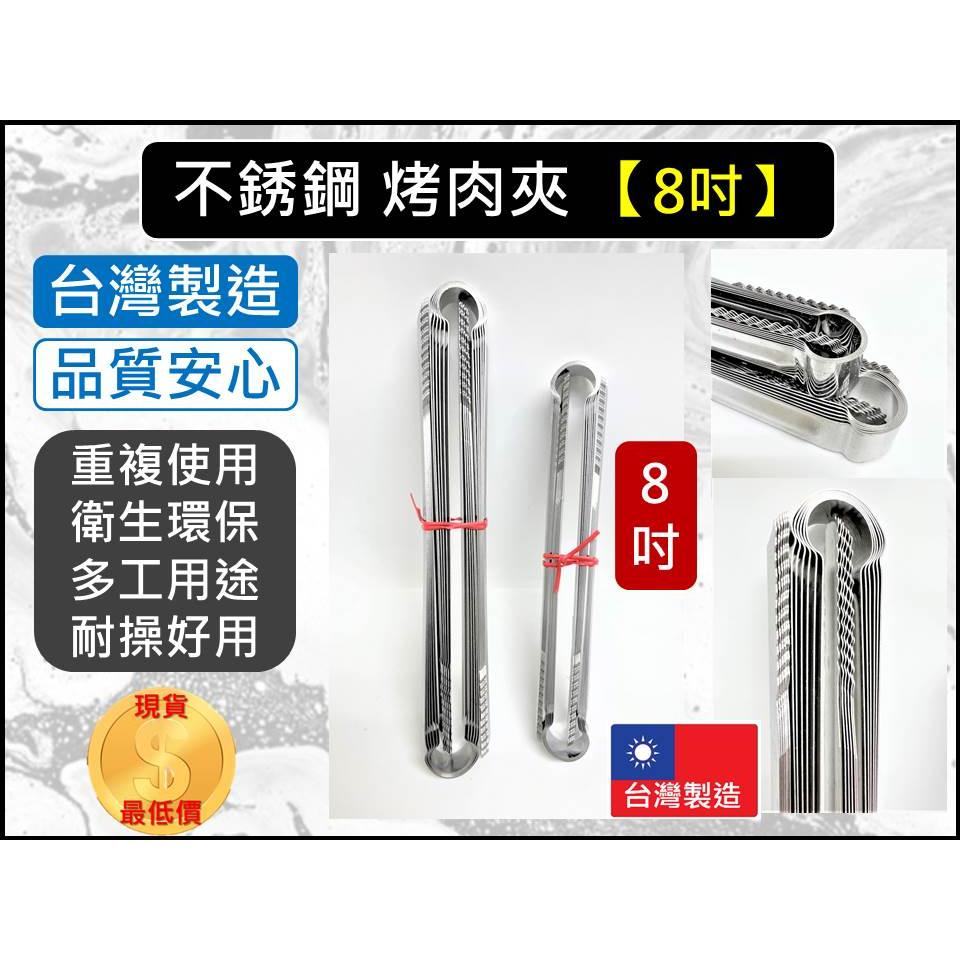台灣製 不銹鋼 烤肉夾 【 8寸 】 料理夾 麵包夾 食物夾 夾子 露營 烤肉 野餐 中秋 耐操好用【揪好室】