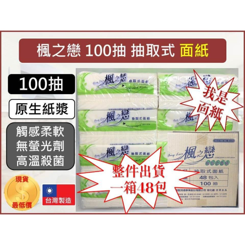 楓之戀 抽取式面紙 100抽 【一箱48包 】 大抽 1串8包 每箱6串 每串8包 抽取式衛生紙 【揪好室】