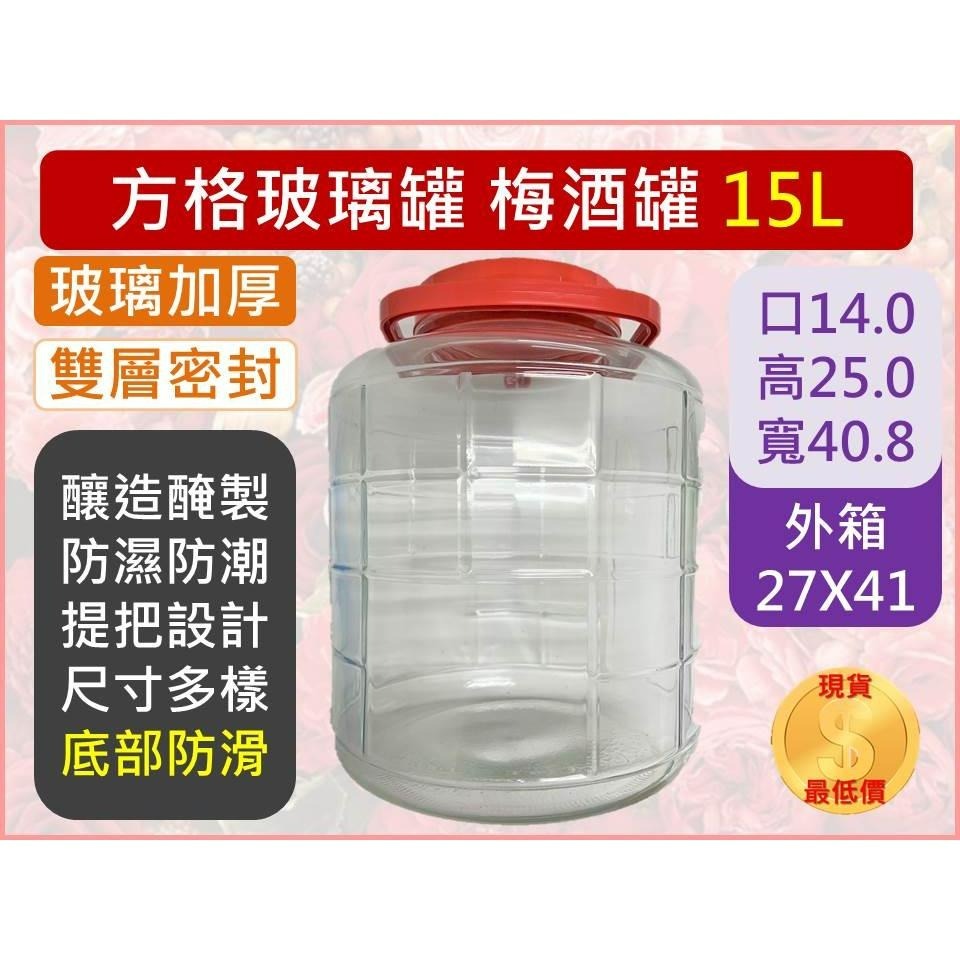 方格玻璃罐 釀造玻璃罐 玻璃罐 【 大容量 】 【 15公升 】 梅酒罐 醃漬罐 果醬罐 梅子 方格罐 【揪好室】