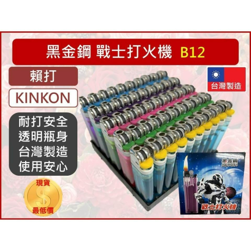 黑金鋼 kinkon B12 戰士打火機 賴打 【1盒50入】5色 火石打火機 含發票 打火機 賴打 中國製造【揪好室】