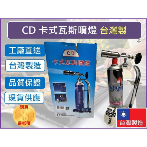 "⚠️【注意】⚠️ 👉🏻【超取】-材積限制__【1單最多4盒】【1單最多4盒】【1單最多4盒】 👉🏻【宅配】-材積限制__【1單最多20盒】【1單最多20盒】【1單最多20盒】 👉🏻【私聊】-超過請私聊,並選擇賣家宅配 🚛【適合大宗採購】【自有物流可送】,歡迎聊聊、亦可至本店洽談合作!😘 🚚【到店自取】也非常歡迎喔!🌈 ☎️【客服專線】 : 0910818155 🙏【說明】🙏 📦️蝦皮代開發票。 📦️當天下單 - 最慢隔天晚上出貨 📦️如遇連續假日,請耐心等候🧡感恩(六、日、例假日原則不出貨) 🕛出貨後約2-3工作天到貨" 【商品介紹】 品名:CD卡式瓦斯噴燈 數量:噴燈1入 瓦斯罐1入 打火機1個 材質:金屬 (鐵、鋅、鍍鉻)、瓦斯罐 產地:台灣 用途:水電配管 金屬燒類 各種工業加工 登山 露營 烤肉等多用途