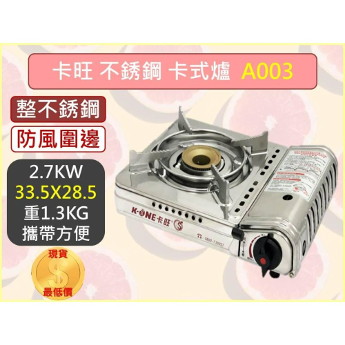 卡旺 A003 不銹鋼 攜帶式卡式爐K1-A003SD 2.7KW 攜帶式瓦斯爐 附膠殼 雙安全卡式爐 【揪好室】