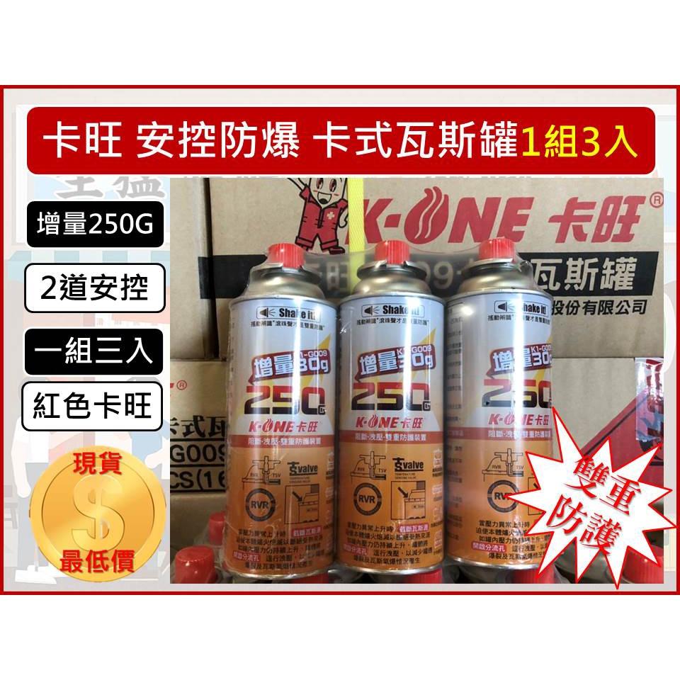 卡旺 安控防爆 卡式瓦斯罐 G009 增量250g【1組3入】紅卡旺 雙安控 KONE 卡式爐專用瓦斯罐 【揪好室】