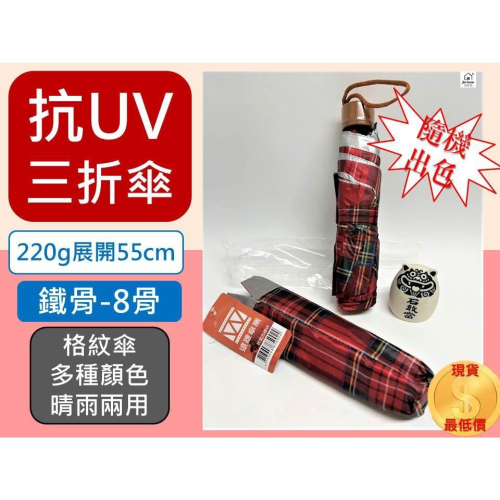 三折 抗UV 格紋傘 【21" 8骨】 鐵骨 摺疊傘 三折傘 抗紫外線 陽傘 晴雨兩用 遠雄02 遠雄傘業【揪好室】