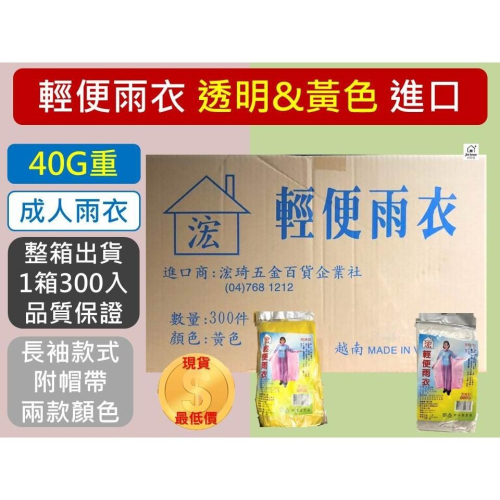 成人輕便型雨衣 40G 【 整箱出貨 】 透明 黃色 成人雨衣 環保雨衣 輕便雨衣 一次性雨衣 越南製 【揪好室】
