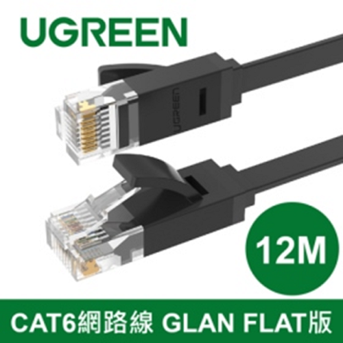 綠聯 CAT6 網路線 GLAN FLAT版 扁線 12M 黑 (50179)