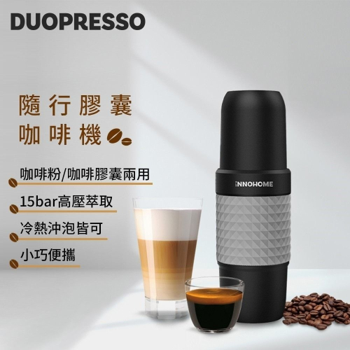 ◆內容物:Duopresso主機、粉勺、粉倉、膠囊倉、充電線、說明書