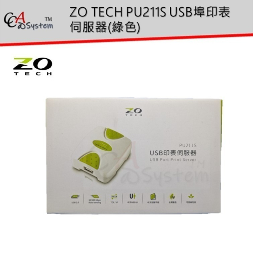 原廠型號: ZO TECH PU211S USB埠印表伺服器(綠色)