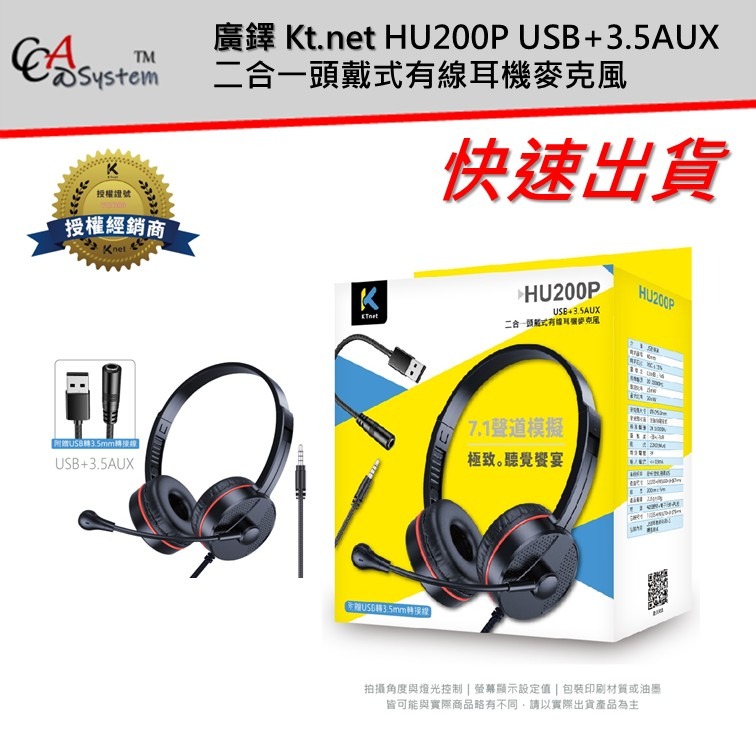 廣鐸 Kt.net HU200P USB+3.5AUX 二合一頭戴式有線耳機麥克風 - 全新品含稅