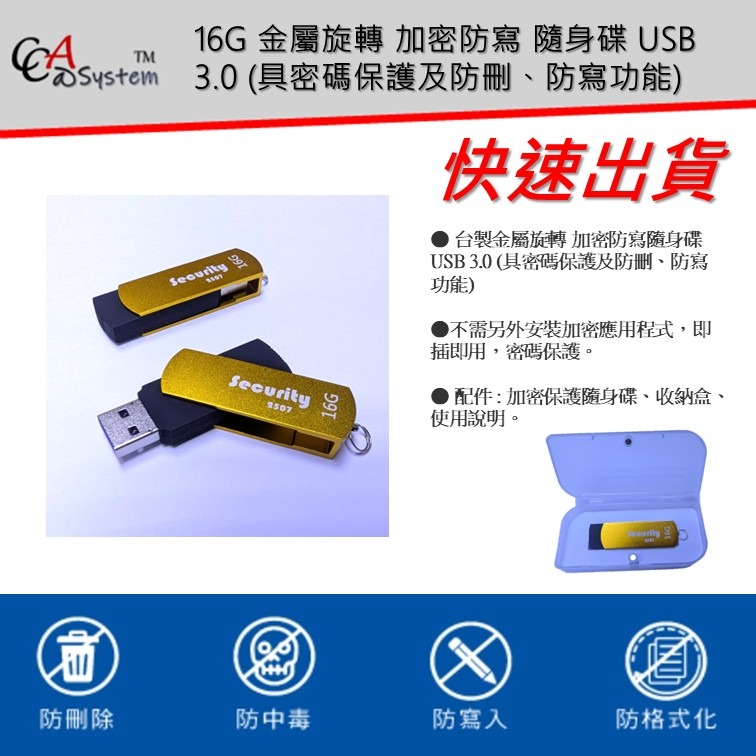 台製金屬旋轉 加密防寫隨身碟 USB 3.0 (具密碼保護及防刪、防寫功能)