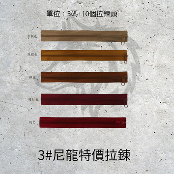 3#尼龍拉練搭配相似色的拉鍊頭,一般用來做小物或包包內袋的拉鍊袋使用