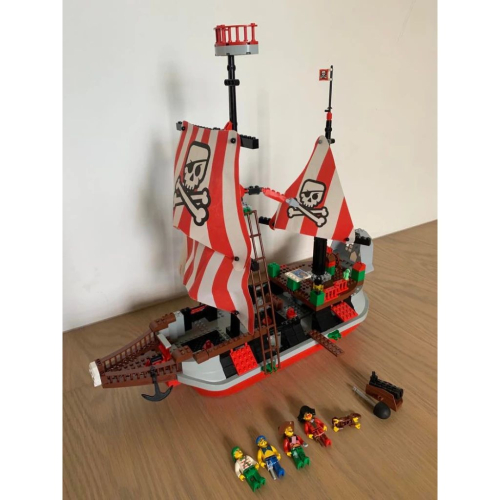 商品狀況如圖, 個人覺得狀況不錯, 人偶無鬆動,海盜旗都是原本的(上面有印LEGO),有缺件(主要缺件在圖7,缺了4個紅色欄杆,一盞燈,一個黑色的船體),一個紅色炮門有斷裂(圖3),二手商品可能會有輕微痕跡,完美主義者勿購買