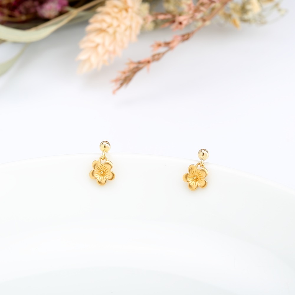 .耳墜:梅花 S925 純銀 厚鍍24k純金 長11mm × 寬 8mm