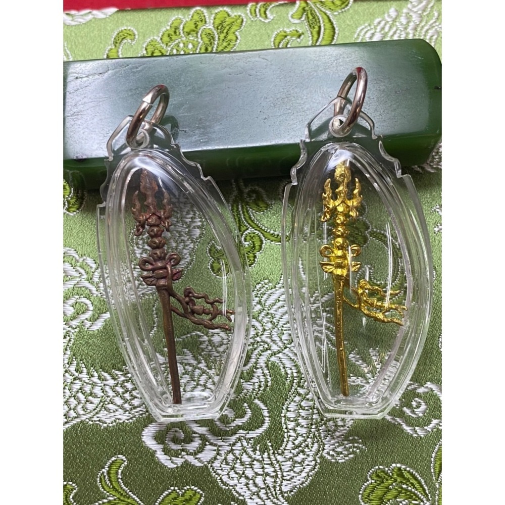 ▻ 材質: 由有不丹古傑寺(身印寺)寺土、古傑寺蓮師手杖木聖樹枝葉、虎穴寺老鐵釘、伏藏聖地獅子巖閉關者製作之特殊除障香、伏藏聖地力巖之水晶、唐東嘉波鐵、九宮八卦、金剛杵等老天銅、老天鐵,新天鐵(俄羅斯、智利、中國等地之隕石鐵),多處佛陀聖地之水土,招財福運緣起物,金銀銅鐵錫鉛汞鎳等多種金屬,鑄造製作而成。