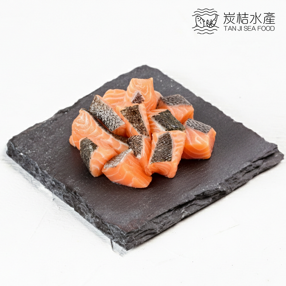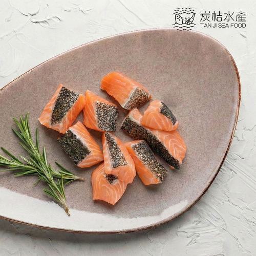 商品名稱:炭桔水產 挪威帶皮菲力鮭魚丁 200g
