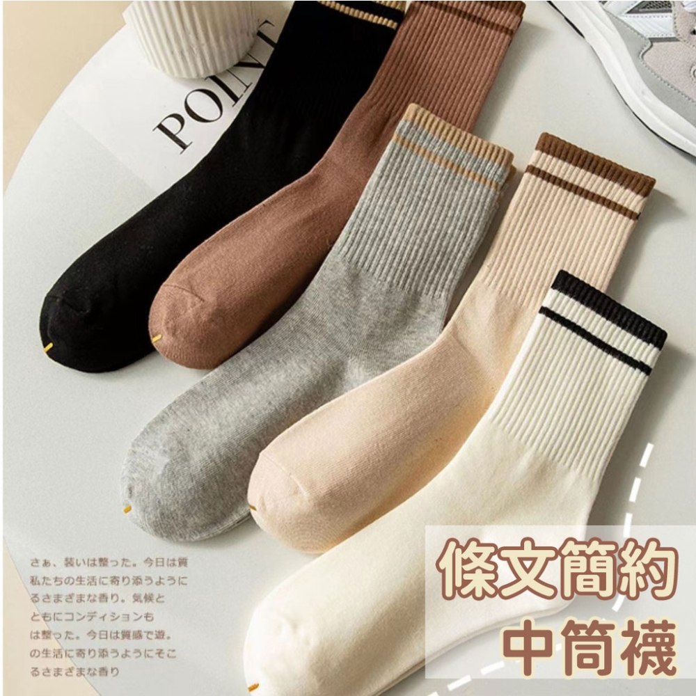 襪子 條紋 中筒襪 女 純色 素色 黑白卡其 女 22-25號 KSelect 聖誕 交換禮物 保暖