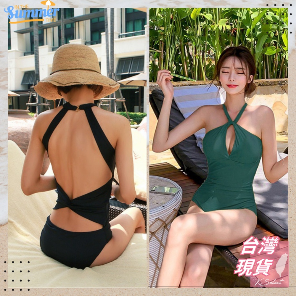[KSelect現貨] 泳衣 泳裝 連身泳衣 一件式泳衣 單色 黑綠黃 溫泉 游泳 海邊 游泳 衝浪 安全 女