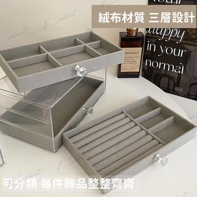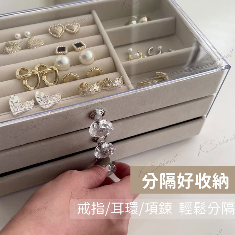 飾品收納盒 飾品收納 耳環收納盒 首飾盒 抽屜 絨布 壓克力 項鍊 耳環 戒指 手錶 收納 珠寶盒
