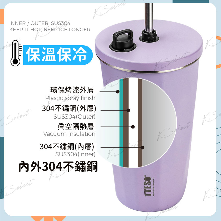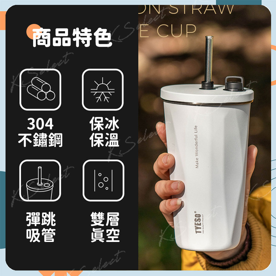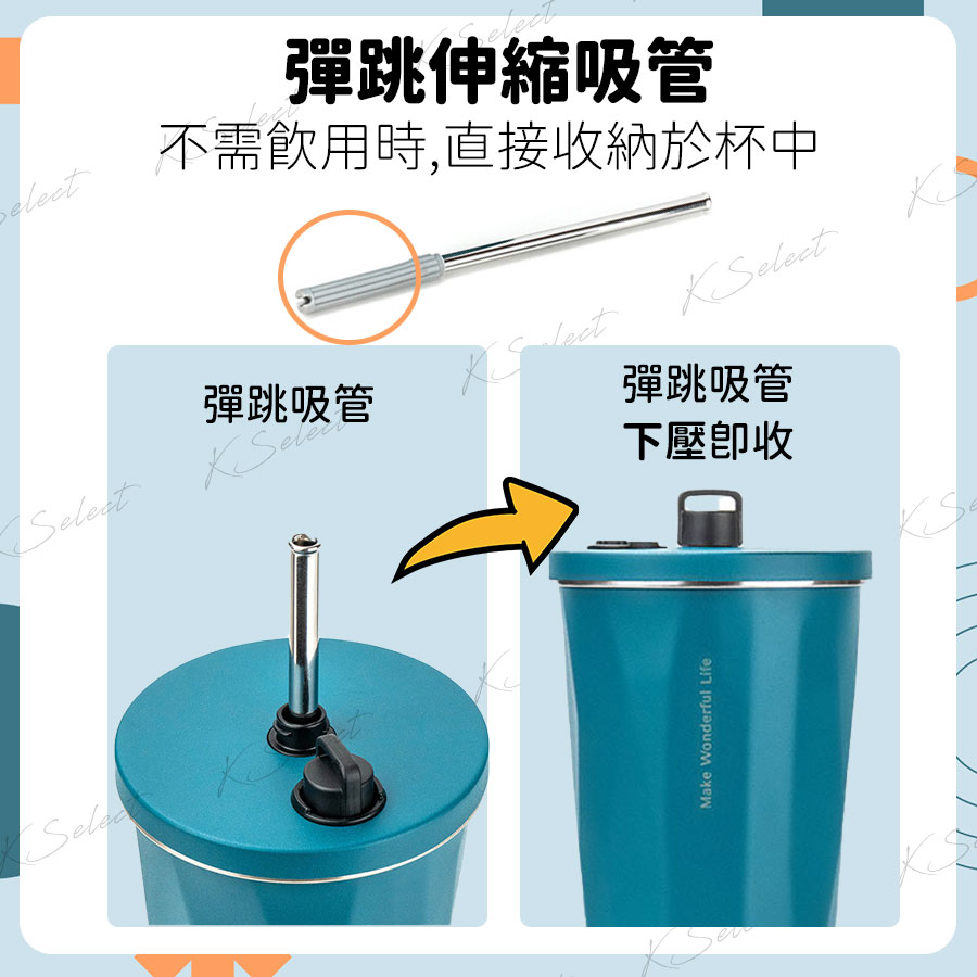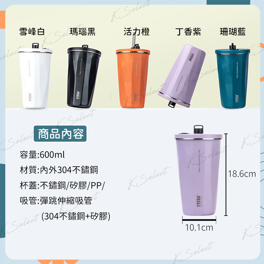 咖啡杯 杯子 600ml 水杯 吸管杯 環保杯 隨行杯 飲料杯 保溫杯 不鏽鋼 彈跳吸管 KSelect