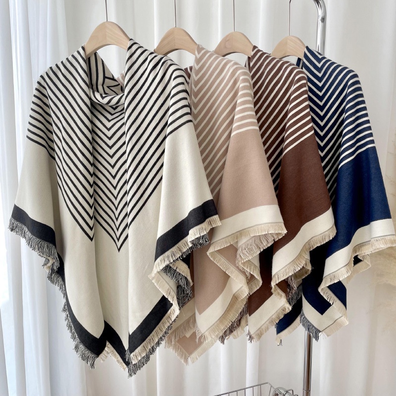 圍巾 披肩 斗篷 圍脖 保暖 外搭 外套 條紋 科技羊毛 聖誕交換禮物 推薦 披風 KSelect 女