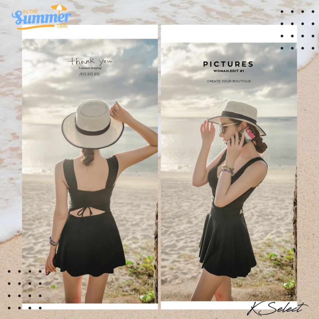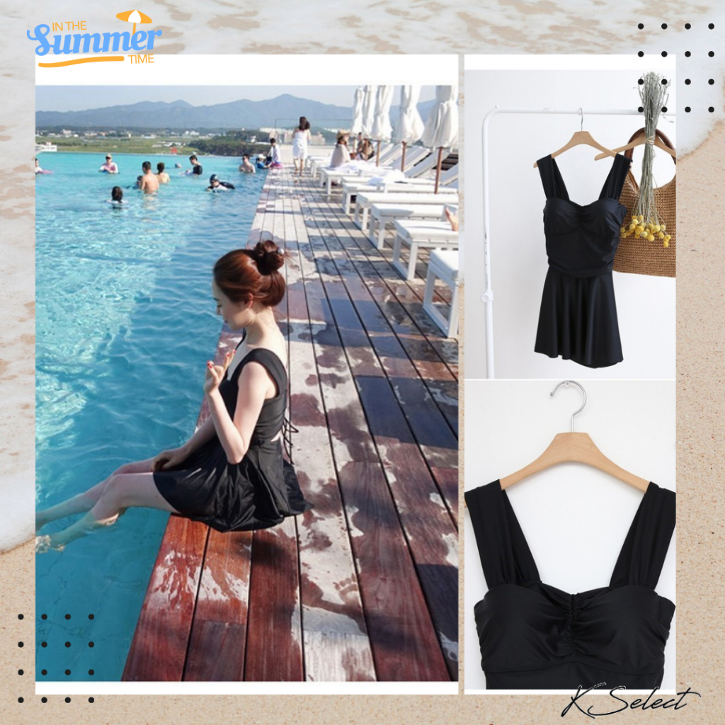 泳衣 連身泳衣 泳裝 一件式泳衣 單色 黑 溫泉 游泳 海邊 游泳 衝浪 安全 女 Kselect