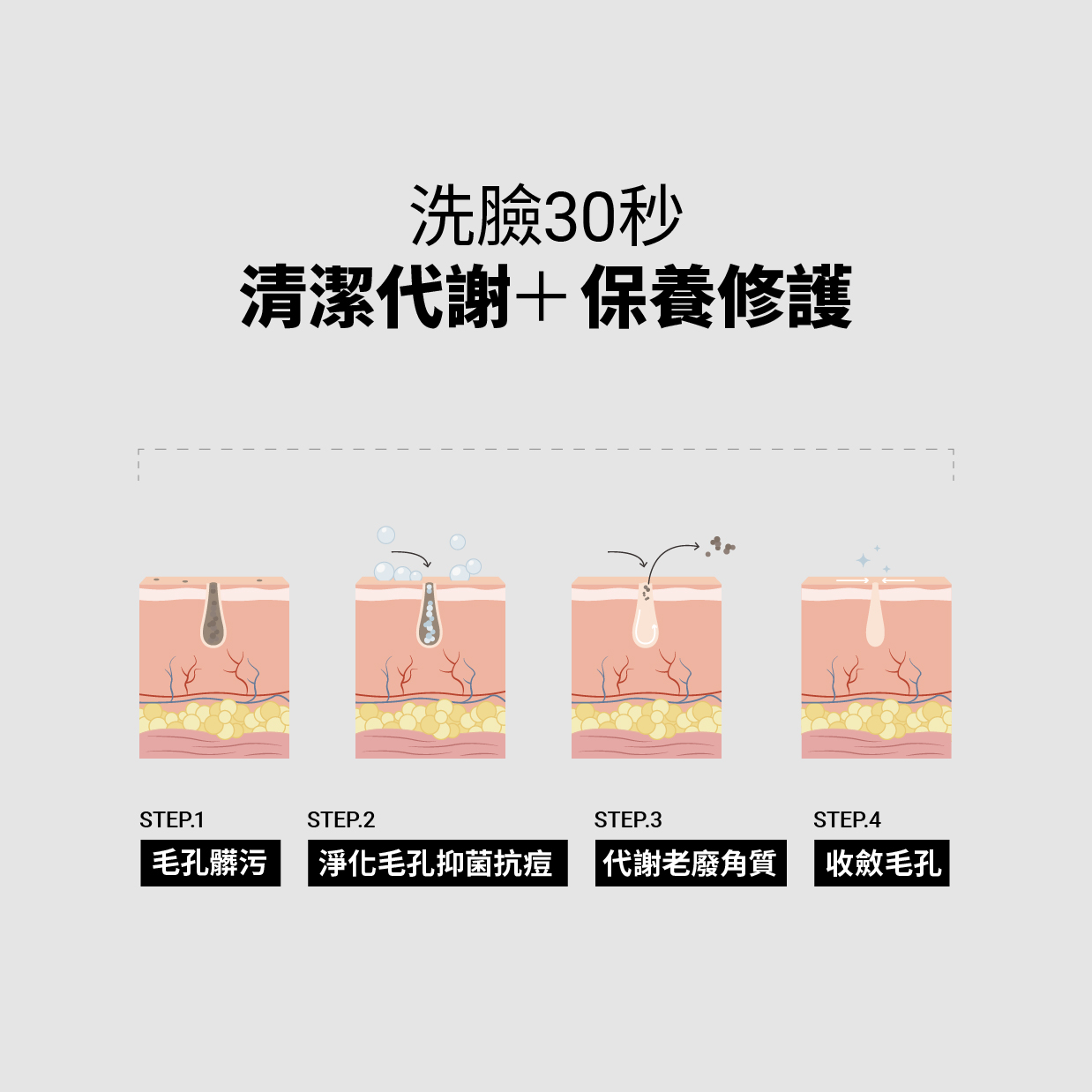 輕盈凝膠質地,細緻綿密的泡沫,深入毛孔、洗去油脂與髒汙,