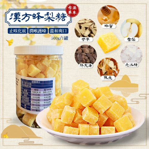 【卡娃依企業行】進口零食專賣店~古法草本漢方蜂梨糖500g(罐裝)