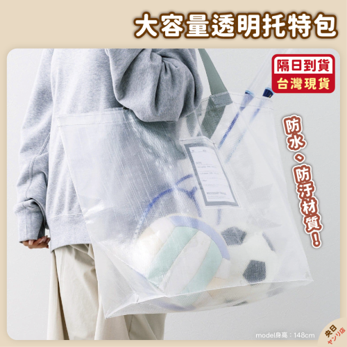 日本 3COINS 大容量 透明 托特包 購物袋 洗衣袋 寄貨袋 環保袋 折疊購物袋 環保購物袋