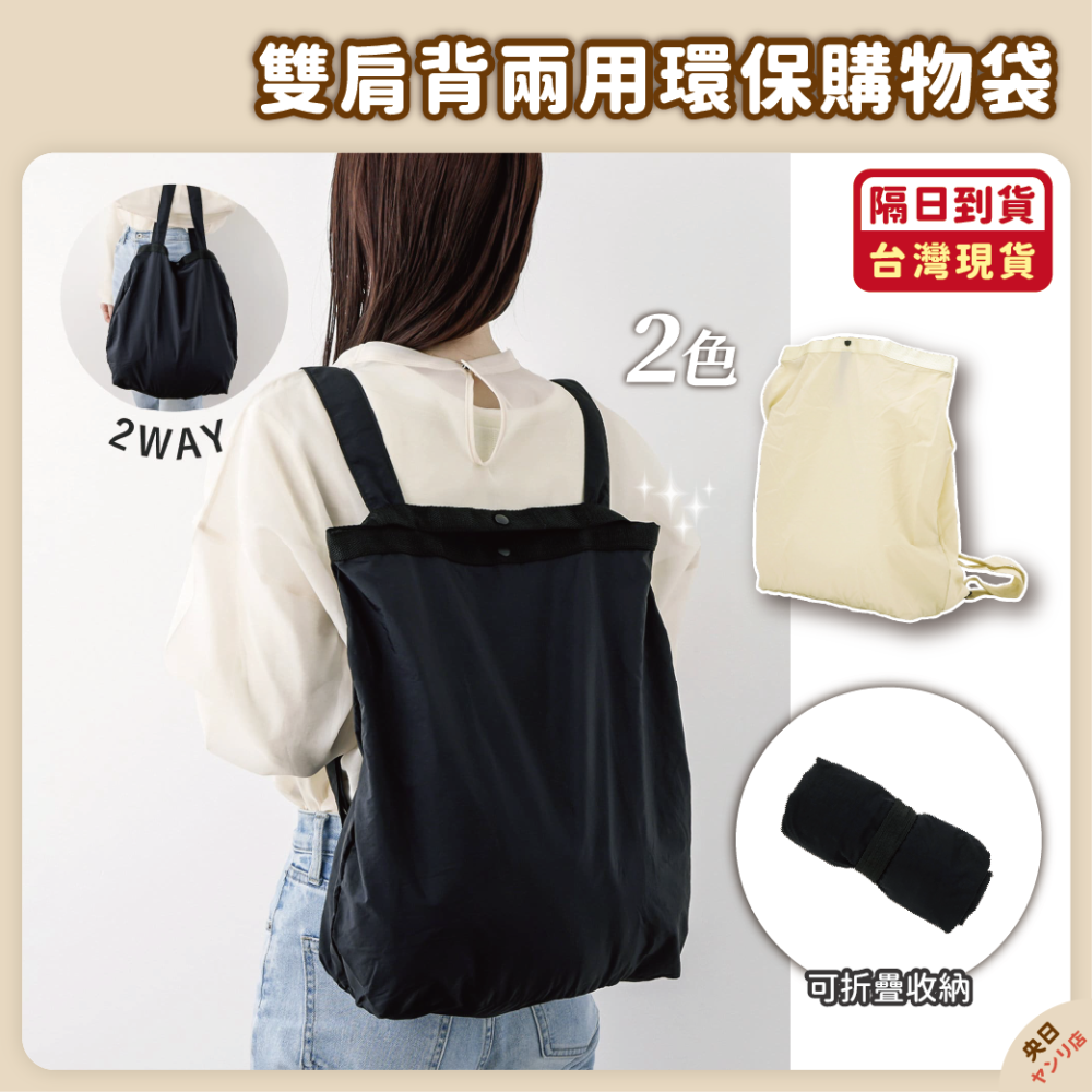 日本 3COINS 雙肩背兩用環保袋 2WAY 環保袋 折疊購物袋 多用途購物袋 買菜包 購物袋