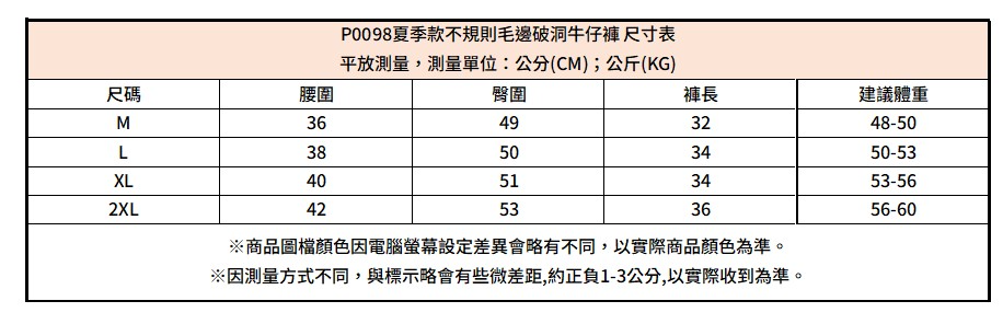 👖夏季款不規則毛邊破洞牛仔褲 尺寸: