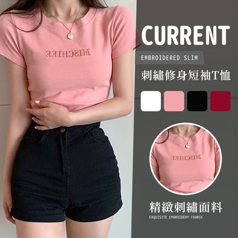 【JDUDS】 韓國新款 字母刺繡 短袖T恤 修身 學生衣服 女上衣 女裝 女生短袖 簡約刺繡