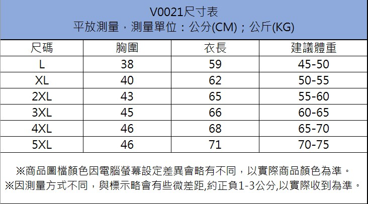 尺碼:L / XL / 2XL / 3XL / 4XL / 5XL