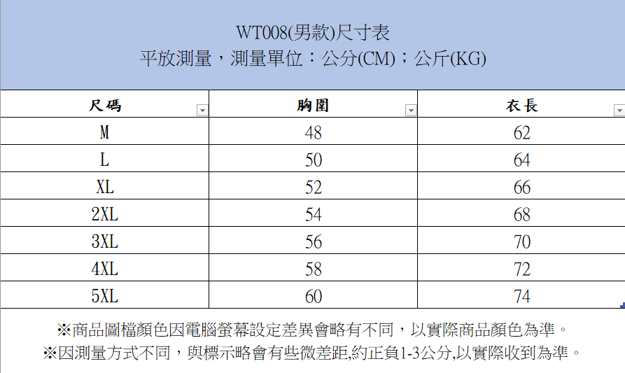 尺碼:L 、XL、 2XL 、3XL 、4XL