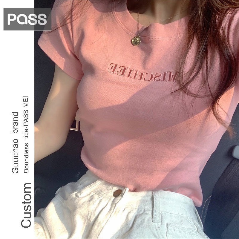 【JDUDS】 韓國新款 字母刺繡 短袖T恤 修身 學生衣服 女上衣 女裝 女生短袖 簡約刺繡