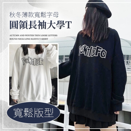 秋冬薄款寬鬆字母圓領長袖t恤 學生薄款大學T