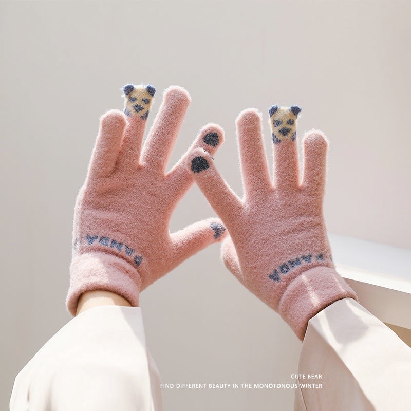 冬季女生新款毛絨手套 騎車手套 可愛俏皮禦寒觸屏保暖手套