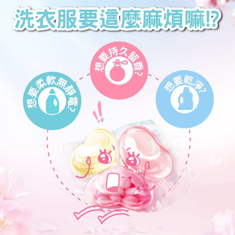 洗衣凝珠味道:粉色櫻花香/紫色白桃香/黃色陽光香