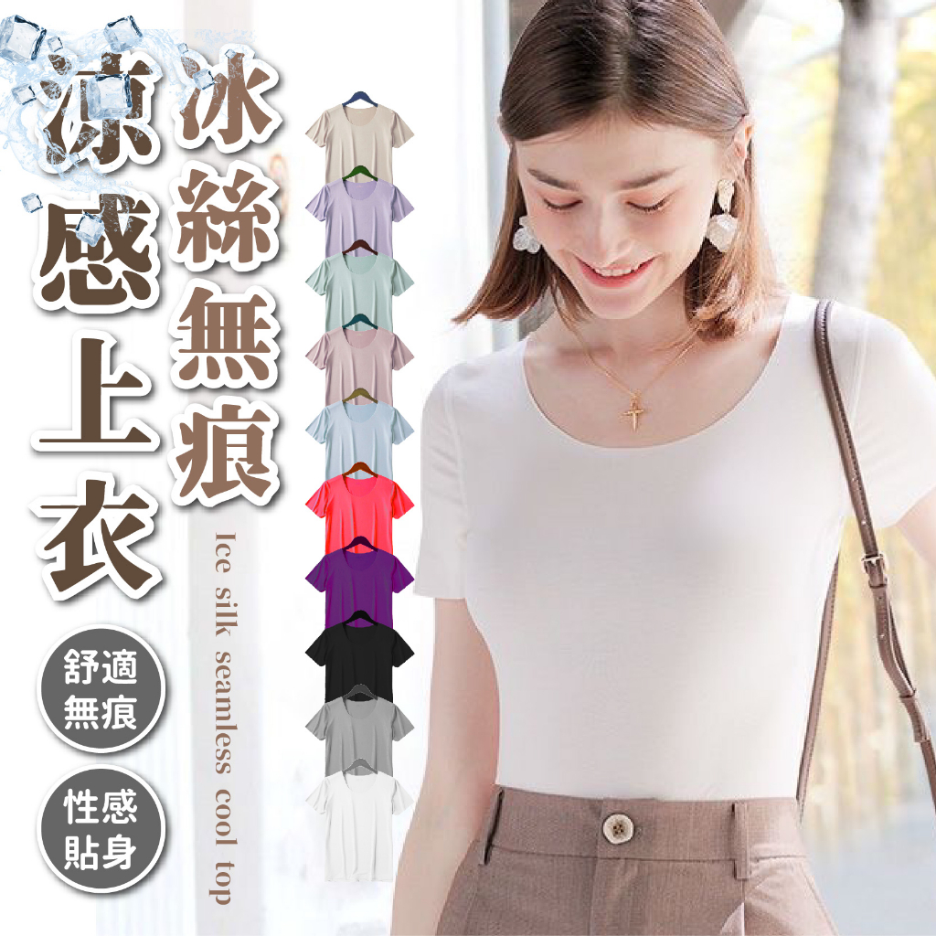 【JDUDS】女款圓領無痕冰絲短袖上衣 透氣舒適透心涼無痕上衣 夏天必備
